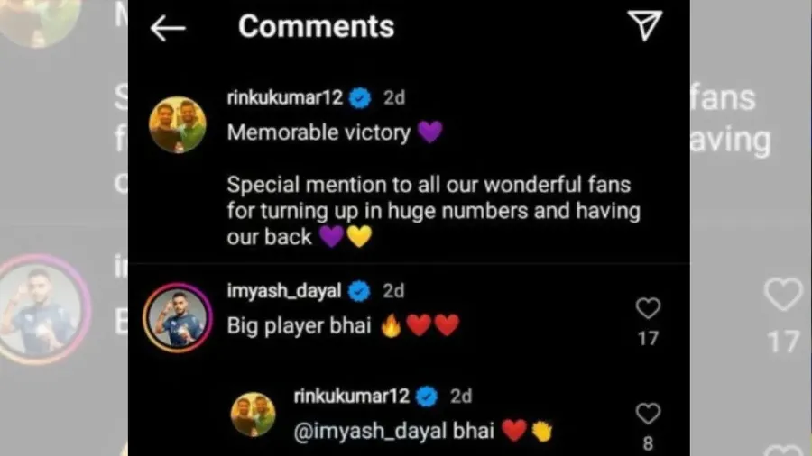 રિંકુ સિંહે પણ યશને ભાઈ કહીને દિલથી અને તાળીઓના ઈમોજીથી બોલાવ્યા હતા.
