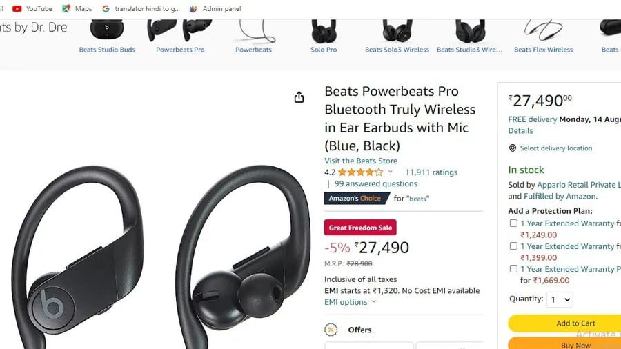 વિરાટ કોહલીના ઇયરબડ્સ જોવામાં Beats Powerbeats Pro TWS earbuds જેવા છે. જે અમેઝોન ઇન્ડિયા પ્લેટફોર્મ પર તે 31,500 રૂપિયામાં ઉપલબ્ધ છે. જો કે, તે TWS ફ્લિપકાર્ટ પર લિસ્ટેડ છે, પરંતુ unavailable શૉ થઇ રહ્યા છે, જેનો અર્થ છે કે તે અત્યારે વેચાણ માટે ઉપલબ્ધ નથી.