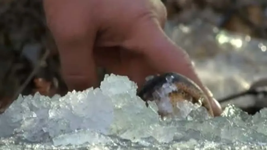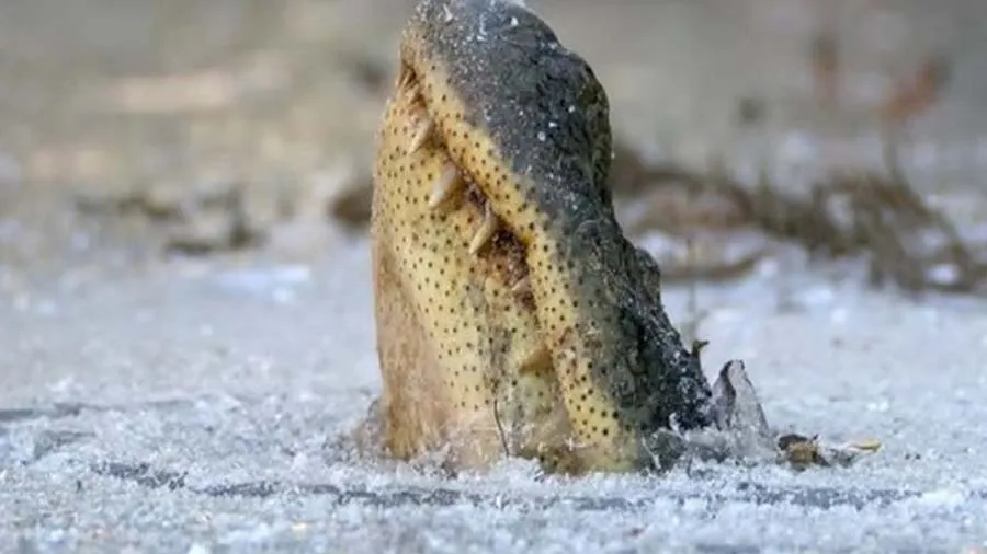 એટલી ઠંડી કે થીજી ગયેલા તળાવમાં મગર ફસાઈ ગયો, જુઓ કેવી રીતે બહાર આવ્યો