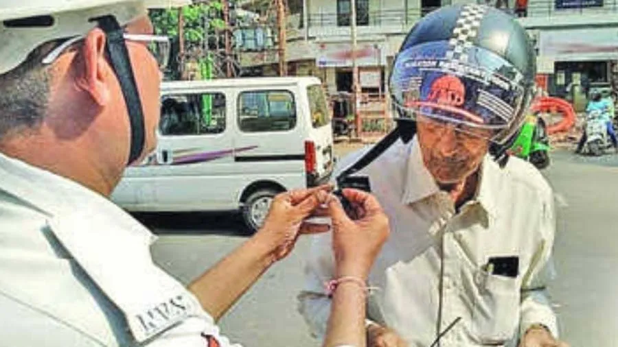 રાજકોટ પોલીસ વાહન ચાલકો પાસે દંડને લેવાને બદલે તેમને હેલમેટ પહેરાવે છે