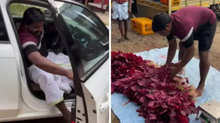 એક વ્યક્તિ સોશિયલ મીડિયા પર એક વ્યક્તિ 'ઓડી કારવાળો ખેડૂત' તરીકે લોકપ્રિય બન્યો છે. હકીકતમાં, કેરળનો રહેવાસી સુજીત પોતાની લક્ઝરી કાર Audi A4માં રોડ કિનારે શાકભાજી વેચવા પહોંચે છે. જ્યારે લોકોએ તેનો વીડિયો જોયો તો તેઓ આશ્ચર્યચકિત થઈ ગયા. કારણ કે ભાઈ..., દેશના મોટાભાગના ખેડૂતોની હાલત આટલી સારી નથી. આ વાયરલ રીલમાં, ખેડૂત લાલ પાલકનો તાજો પાક એકત્રિત કરતો અને પછી સ્ટોક વેચવા માટે તેની લક્ઝરી કાર ઓડીમાં બજારમાં જતા જોઈ શકાય છે. બજારમાં પહોંચતા જ તે પોતાના બુટ અને સફેદ લુંગી ઉતારે છે. આ પછી, જમીન પર એક સાદડી પાથરવામાં આવે છે અને તેના પર તાજી કાપેલી લાલ પાલક લગાવવામાં આવે છે, જેથી ગ્રાહકો તેને જોઈને તેમની દુકાન પર આવી શકે.