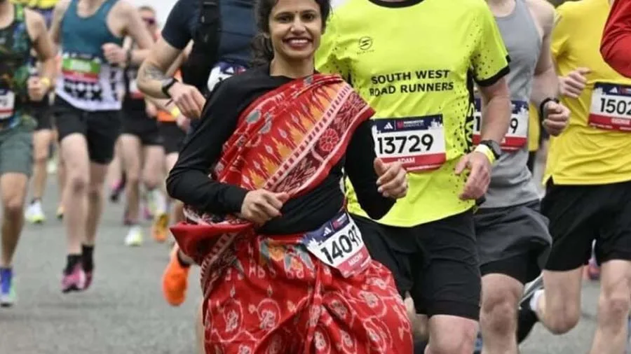 સાડી પહેરીને UKમાં ભારતીય મહિલા મેરેથોનમાં 42 કિ.મી દોડી, આ રાજ્યની સાડી છે