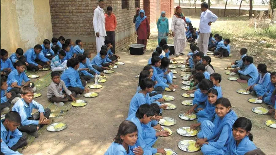 મધ્યાહન ભોજન યોજના 1984માં શરૂ થઇ હતી અને તેમાં 25 ટકા ફાળો રાજ્ય સરકાર અને 75 ટકા કેન્દ્ર સરકાર આપે છે. સરકારી તેમજ પંચાયતી સંસ્થા દ્વારા સંચાલિત પ્રાથમિક અને ઉચ્ચ માધ્યમિક શાળાઓમાં મફત ભોજન આપવામાં આવે છે.