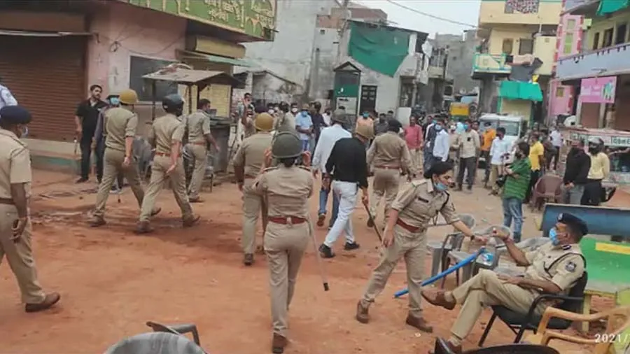 કાલોલમાં ટોળાનો સામનો કરવા પોલીસે માથા પર તપેલી હાથમાં બેડું ઉઠાવ્યું, જુઓ Photo