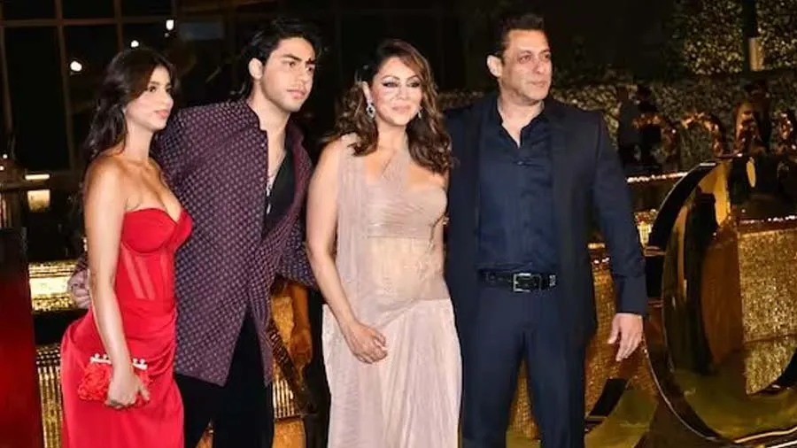 સોશિયલ મીડિયા પર એક વીડિયો ઘણો જોવામાં આવી રહ્યો છે, આ વીડિયોમાં સુહાના ખાન, ગૌરી ખાન અને આર્યન ખાન સલમાન ખાન સાથે ફોટો પડાવતા જોવા મળી રહ્યા છે. ગૌરી ખાને ગાઉન પહેર્યું છે જ્યારે સુહાના ખાને પણ લાલ રંગનું ગાઉન પહેર્યું છે. આર્યન ખાન સ્ટાઇલિશ અંદાજમાં જોવા મળી રહ્યો છે, તો ભાઈજાન ફુલ સ્વેગ સાથે બ્લેક સૂટમાં જોવા મળી રહ્યો છે.