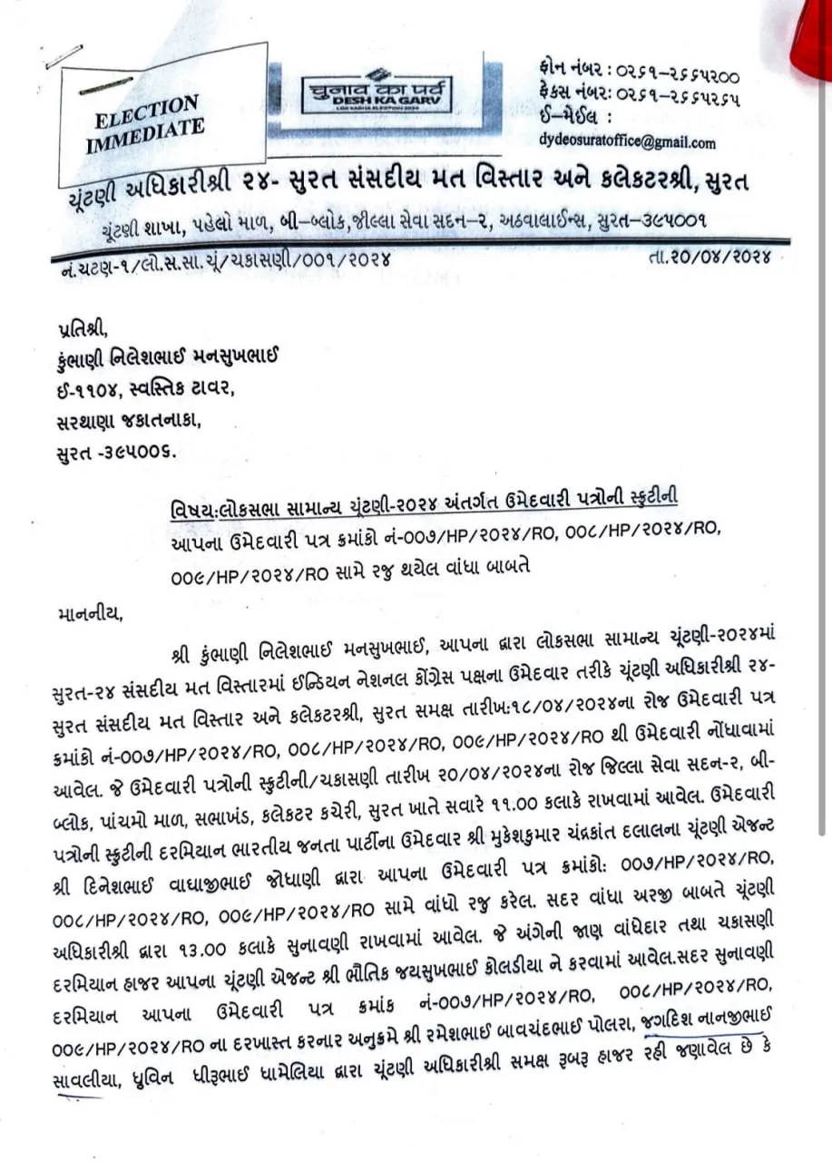 કોંગ્રેસના સુરતના ઉમેદવાર નિલેશ કુંભાણી ચકરડે ચઢી ગયા, ફોર્મ રદ, હવે શું થશે?