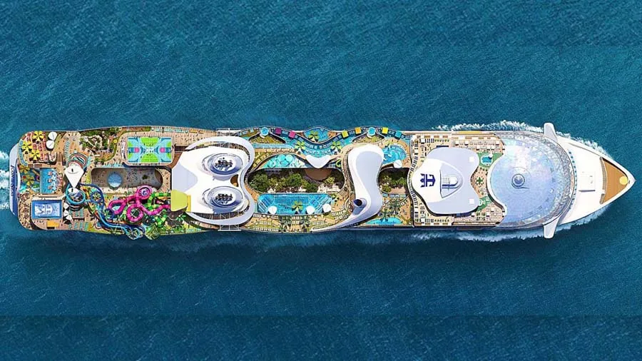 અત્યાર સુધી તમે સૌથી મોટા જહાજ તરીકે ટાઇટેનિકનું નામ સાંભળ્યું હશે, પરંતુ ટાઇટેનિકથી 5 ગણું મોટું અને દુનિયાનું સૌથી મોટા જહાજનું નામ છે ‘ICON OF THE SEAS’ આ જહાજ આવતા વર્ષે જાન્યુઆરી મહિનામાં પહેલીવાર યાત્રા પર નિકળશે. 19 માલના આ જહાજ પર સમુદ્ધનું સૌથી મોટું વોટરપાર્ક પણ છે. ચાલો, આપણે કદાચ રૂપિયા ખર્ચીને જહાજની મજા ન માણી શકીએ તો તસ્વીરો જોઇને તો મજા માણી શકીએને.અમે તમને આ જહાજની જાણકારી આપીશું.