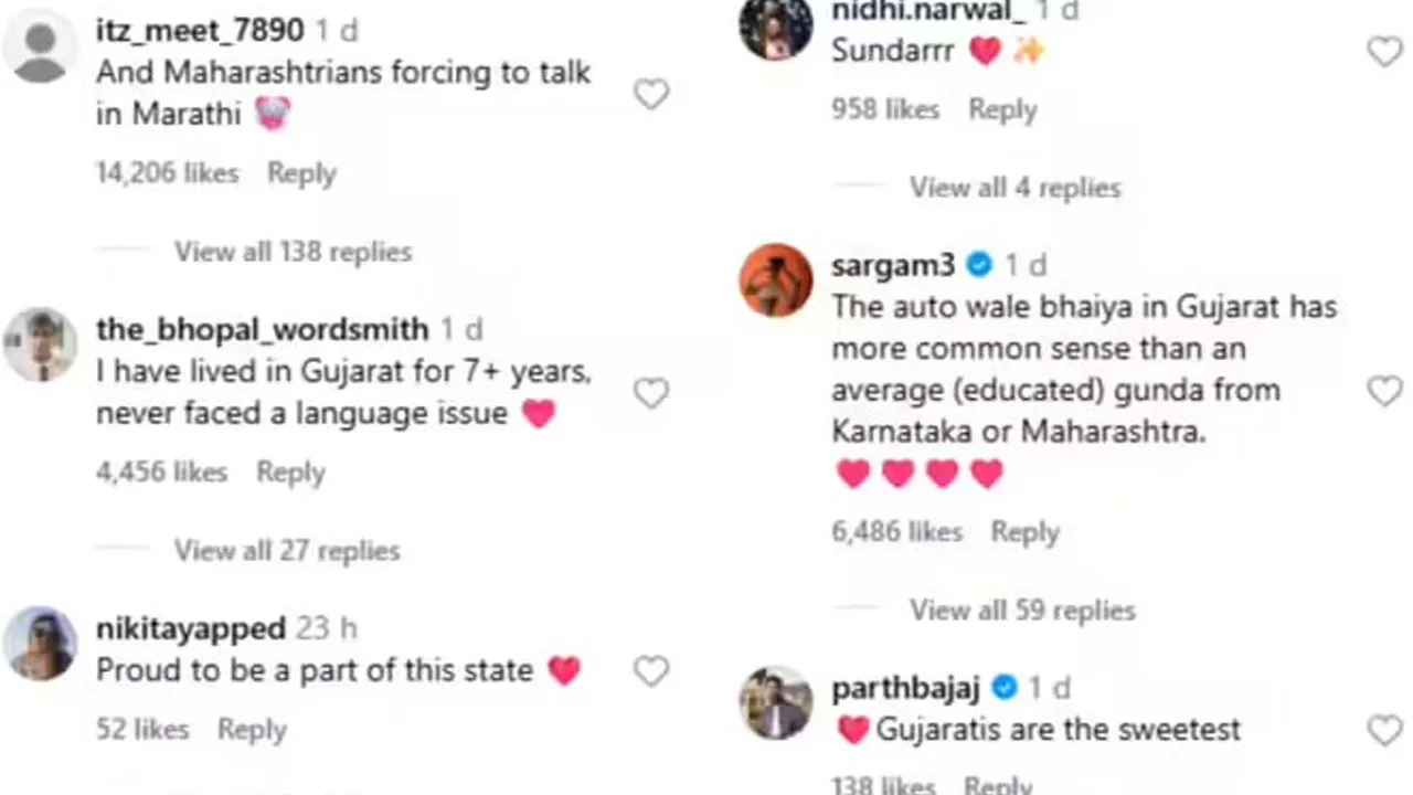એક યુઝરે લખ્યું કે, ગુજરાતના ઓટોવાળા ભાઈમાં કર્ણાટક કે મહારાષ્ટ્રના સરેરાશ (શિક્ષિત) ગુંડા કરતા વધુ કોમન સેન્સ છે. બીજા એક યુઝરે કહ્યું કે, ગુજરાતીઓ સૌથી મીઠા છે. ત્રીજા યુઝરે લખ્યું કે, હું ગુજરાતમાં 7+ વર્ષથી રહું છું, મને ક્યારેય ભાષાની સમસ્યાનો સામનો કરવો પડ્યો નથી. ચોથા યુઝરે કહ્યું કે હું આ રાજ્યનો હિસ્સો બનીને ખુશ છું.
