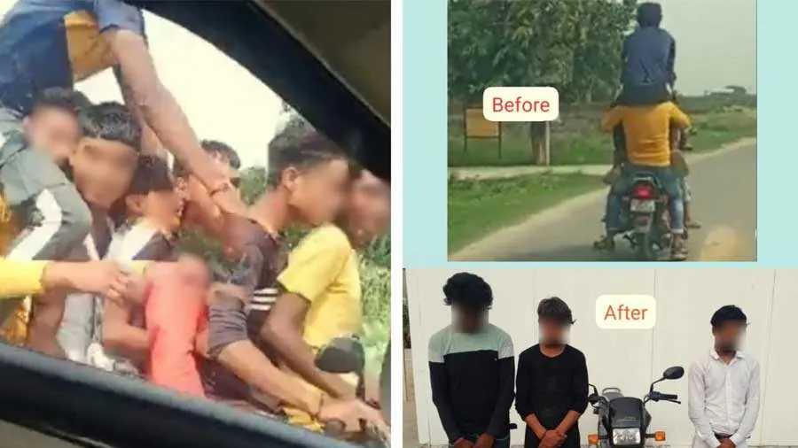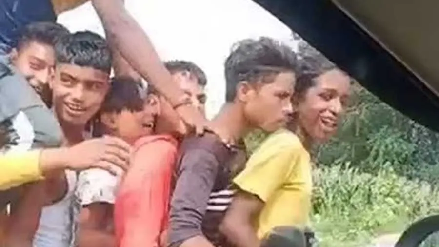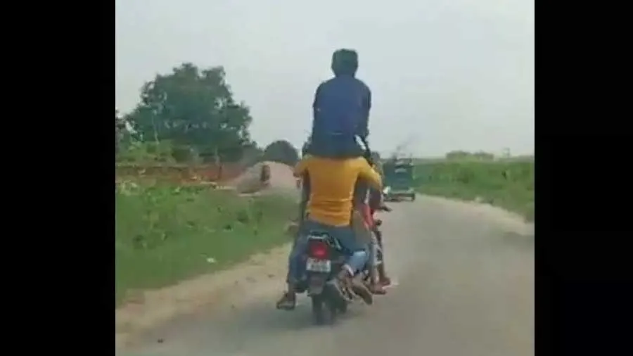 7 છોકરાઓ એક બાઇક પર બેસીને જઈ રહ્યા હતા, છેલ્લો એક તો ખભા પર બેઠો, વીડિયો વાયરલ
