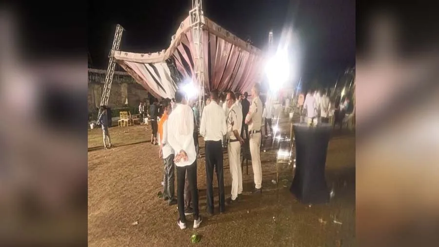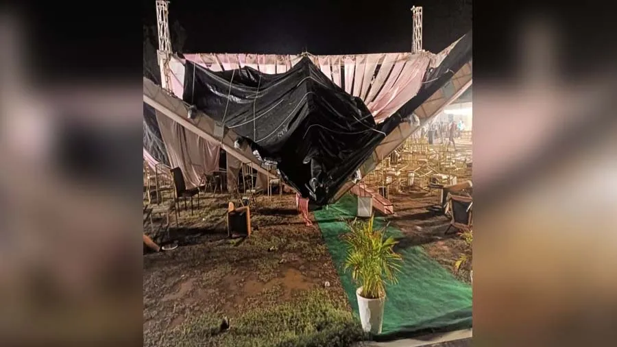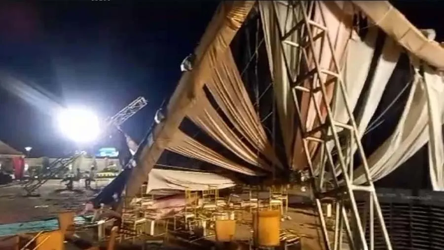 આ દરમિયાન લોકો વોટર પ્રૂફ મંડપની નીચે વરસાદની બચવા માટે ઊભા રહી ગયા પરંતુ, મંડપની ઉપરના હિસ્સામાં પાણી જમા થઈ ગયુ અને પછી અચાનક જ મંડપ તૂટી ગયો. મંડપ તૂટતા જ ભાગદોડ અને બૂમાબૂમ થઈ ગઈ. ત્યાં અફરાતફરી મચી ગઈ અને લોકો જીવ બચાવવા માટે ભાગવા માંડ્યા. દરમિયાન, મંડપના કેટલાક હિસ્સામાં કરંટ પણ ફેલાઇ ગયો અને એક મહિલા તેની ચપેટમાં આવી ગઈ.