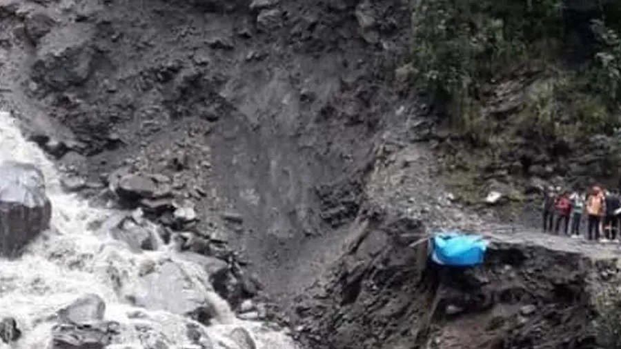 #WATCH | A bridge connecting Aut-Banjar washed away as Beas river flows ferociously in Mandi district of Himachal Pradesh