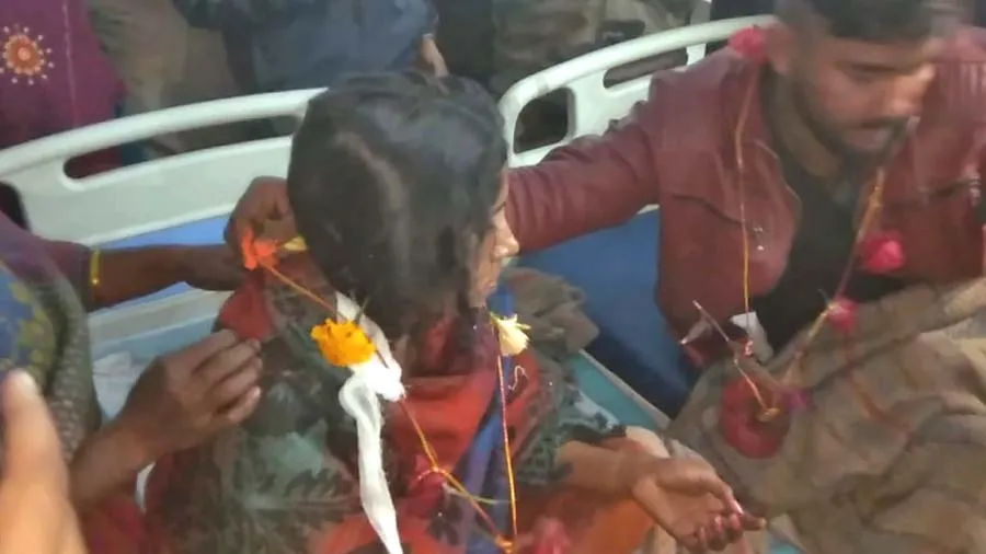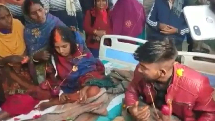 બિહારના અરવલમાં એક અનોખા લગ્ન જોવા મળ્યા છે. તેની આખા જિલ્લામાં ચર્ચા થઇ રહી છે. આ ફિલ્મી સ્ટાઇલમાં એક પ્રેમી કપલે હૉસ્પિટલને બેડ પર લગ્ન કર્યા. બંનેએ એક બીજાને માળા પહેરાવી અને વરરાજાએ દુલ્હનની સેંથામાં સિંદુર ભરાવ્યું. આ લગ્નમાં હૉસ્પિટલના કર્મચારી અને દર્દી સામેલ થયા હતા. ઠાકુર બિગહા ગામના રહેવાસી નીરજ કુમાર પોતાની પ્રેમિકા કૌશલ્યા કુમારીને બાઇક પર બેસાડીને બૈદરાબાદ ફરાવવા નીકળ્યો હતો. ઘરે પરત ફરવા દરમિયાન તેમની બાઇકનું કાર સાથે એક્સિડન્ટ થઇ ગયું.
