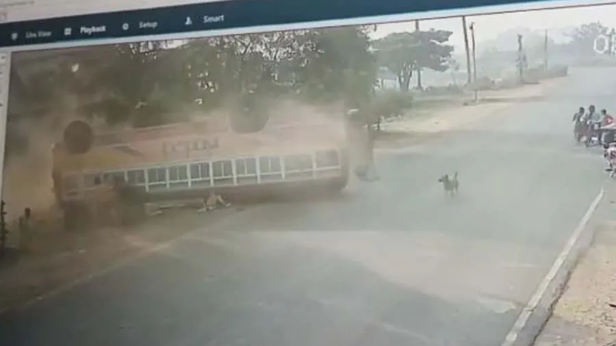 સીસીટીવી ફૂટેજમાં દેખાઈ રહ્યું છે કે રસ્તા પર ફૂલ સ્પીડે બસ આવી રહી છે. તેના આવવાના થોડી સેકન્ડ પહેલા જ એક એમ્બ્યુલન્સ ત્યાંથી પસાર થાય છે. રસ્તા પર કેટલાંક લોકો સાયકલથી જતા જોવા મળે છે. આ દરમિયાન બસ રોડના કિનારા તરફ ઘસડાય છે અને એકદમ પલટી ખાઈ જાય છે. તેની નીચે ઘણા યાત્રીઓ દબાઈ જાય છે અને કેટલાંક તેનાથી બચીને ભાગતા જોવા મળે છે. જ્યારે ઘટનાસ્થળે હાજર લોકો દોડીને મદદ માટે આગળ આવતા દેખાય છે. તેઓ બસની નીચે દબાયેલા લોકોને બહાર કાઢવાની કોશિશમાં લાગી જાય છે. રિપોર્ટ પ્રમાણે, આ દુર્ઘટના રવિવારે સવારે કટવા-બીરભૂમ સ્ટેટ હાઈવે પર થઈ હતી. પોલીસ અધિકારીએ કહ્યું કે બસ દુર્ઘટનામાં 3 લોકો ગંભીર રીતે ઈજાગ્રસ્ત થયા છે, જેમની કટવા સરકારી હોસ્પિટલમાં સારવાર ચાલી રહી છે.