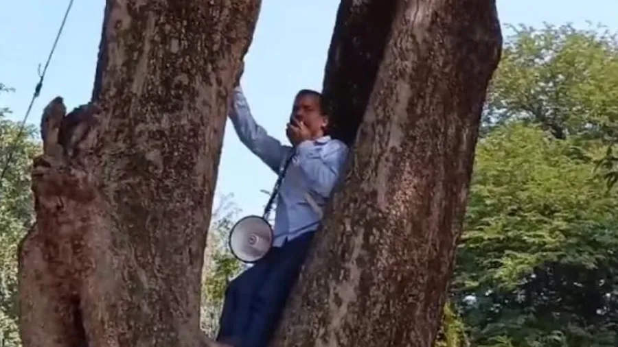 અધિકારીઓએ ન સાંભળી ફરિયાદ તો માઇક લઈને ઝાડ પર ચઢી ગયા BJP નેતા, જાણો પછી શું થયુ