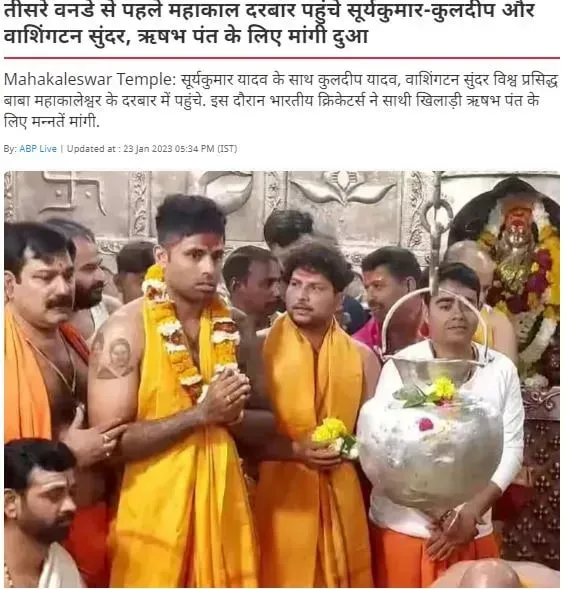 સૂર્યકુમાર યાદવ સહિત અનેક ભારતીય ખેલાડીઓ મહાકાલના દર્શને ગયા હતા એ સમાચાર અનેક મીડિયાએ પ્રસિદ્ધ કર્યા હતા.