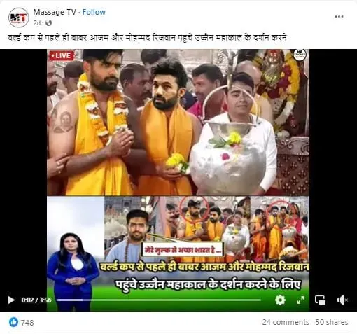 ફેસબુક પર એક વાયરલ પોસ્ટમા કહેવામાંઆવ્યું છે કે વર્લ્ડકપ પહેલાં જ બાબર આઝમ અને મોહમંદ રિઝવાન ઉજ્જૈન મહાકાલના દર્શને પહોંચ્યા. એ ઉપરાંત ફેસબુક અનેક પેજ પર વાયરલ દાવો શેર કરવામાં આવ્યો છે.