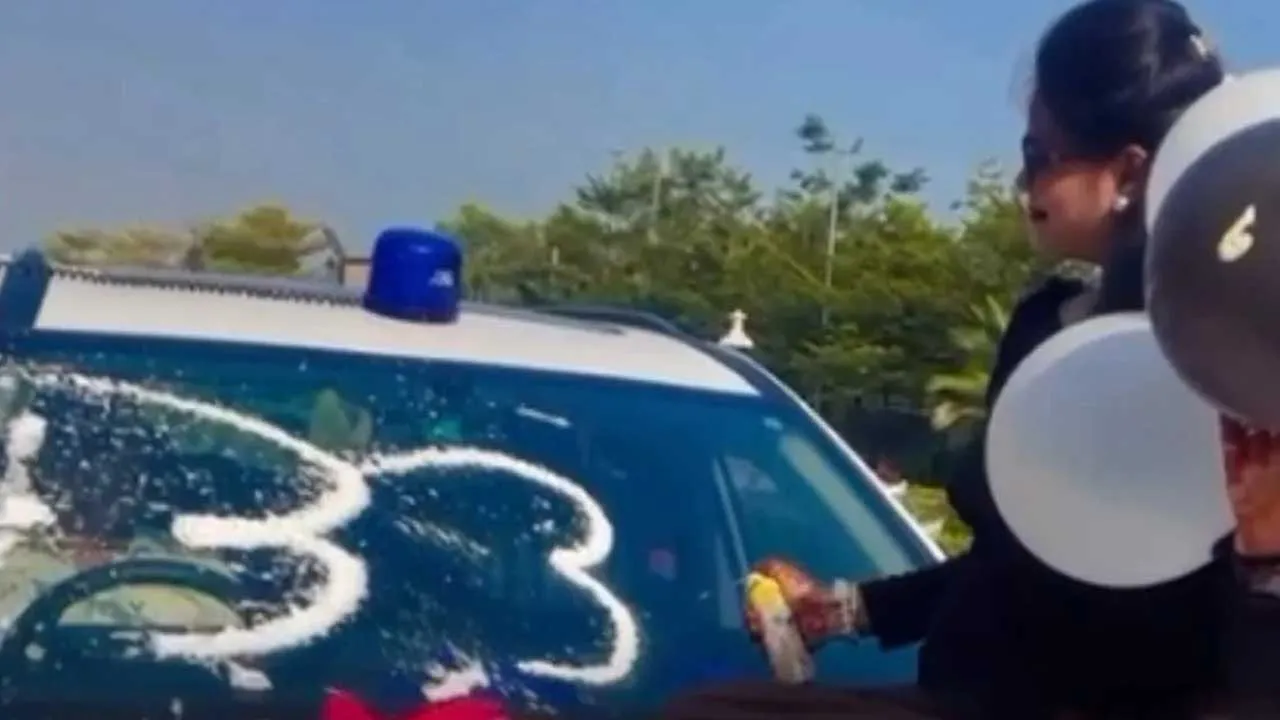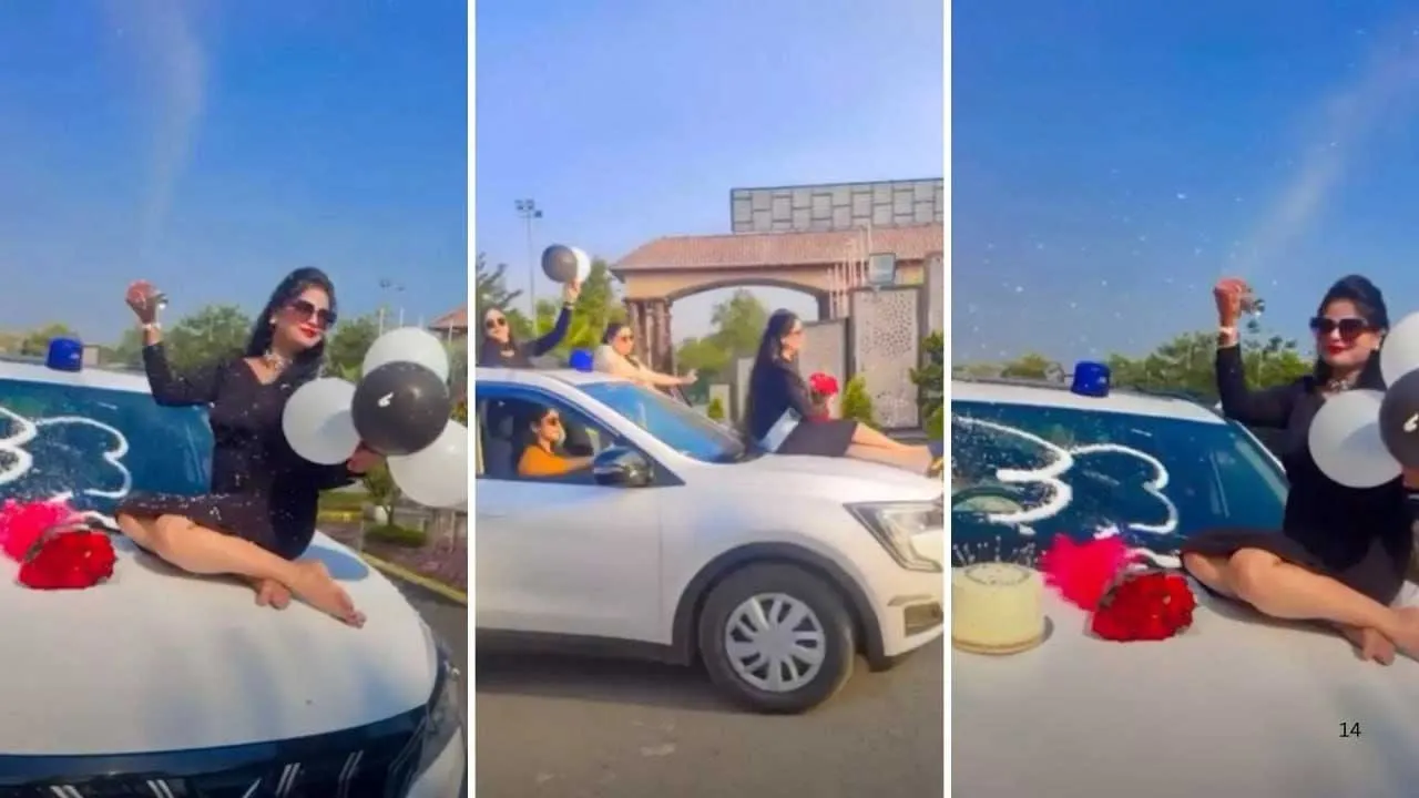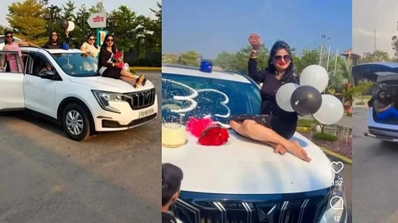 બીજા એક વીડિયોમાં, કારના બોનેટ પર બેઠેલી એક મહિલા વિન્ડસ્ક્રીન પર સ્નો સ્પ્રે છાંટીને તેના પર '32' લખતી જોવા મળે છે. ડ્રાઇવરની સીટ પર બેઠેલી એક વ્યક્તિ વિન્ડસ્ક્રીન પર લખેલા આ નંબરને સાફ કરે છે. ત્યારપછી મહિલા વિન્ડસ્ક્રીન પર '33' લખે છે. બોનેટ પર એક કેક અને ગુલદસ્તો પણ રાખવામાં આવ્યો છે, તે જોઈ શકાય છે.