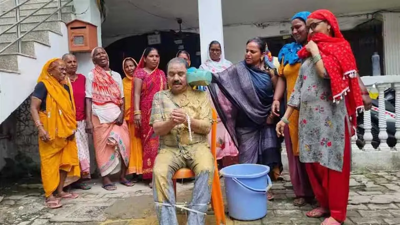 BJP નેતાને દોરડાથી બાંધીને મહિલાઓએ કાદવથી નવડાવ્યા, વરસાદ લાવવા માટે આવું કરાયું