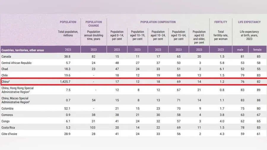 આ સંબંધમાં ધ સ્ટેટ ઓફ વર્લ્ડ પોપ્યુલેશન રિપોર્ટ, 2023એ બુધવારના રોજ પોતાનો રિપોર્ટ રજૂ કર્યો છે. આ રિપોર્ટનું નામ 8 બિલિયન લાઇવ્સ, ઇનફાઇનાઇટ પોસિબિલિટિઝ – ધ કેસ ફોર રાઇટ્સ એન્ડ ચોઇસ, છે. આ આંકડા ડેમોગ્રાફિક ઇન્ડિકેટર્સની શ્રેણીમાં આપવામાં આવ્યા છે.
