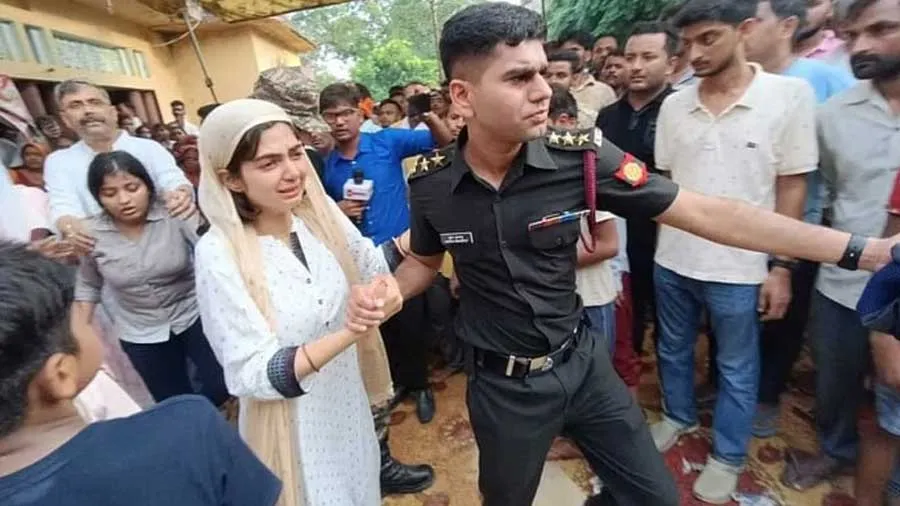 ગાર્ડ ઓફ ઓનર બાદ મૃતદેહની નજીક પહોંચેલી પત્ની એન્જિનિયર સૃષ્ટિ સિંહે શહીદ પતિ અંશુમનના કપાળ પર ચુંબન કર્યું અને કહ્યું કે મને તમારી શહાદત પર ગર્વ છે, મારા હીરો, હું તમને મારા હૃદયના ઊંડાણથી સલામ કરું છું. તમે ભારત માતાની રક્ષા કરી છે. આટલું બોલીને શહીદની પત્ની સૃષ્ટિ ધ્રુસ્કે ધ્રુસ્કે રડી પડી હતી અને ફસડાઇ પડી હતી .આ જોઈને શહીદની માતા મંજુ દેવીએ તેને સંભાળીને સાંત્વના આપી. આના પર લોકોએ ભારત માતા કી જયના નારા લગાવવા લગાવ્યા હતા.