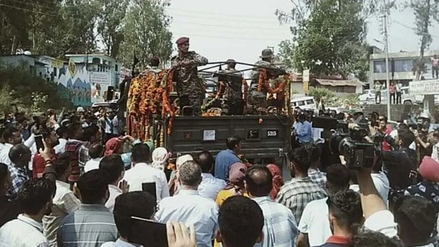 જમ્મુ વિભાગના રાજૌરીમાં શુક્રવારે આતંકવાદીઓ સાથે થયેલા ઘર્ષણમાં ભારતીય સેનાના 5 જવાન શહીદ થઈ ગયા હતા. તેમાં ઉત્તરાખંડના રહેવાસી રૂચીન સિંહ રાવત, પશ્ચિમ બંગાળના સિદ્ધાંત ક્ષેત્રી, જમ્મુ-કશ્મીરના નીલમ સિંહ અને હિમાચલ પ્રદેશના અરવિંદ કુમાર અને પ્રમોદ નેગી શહીદ થઈ ગયા. સિરમોર જિલ્લાના રહેવાસી પ્રમોદ નેગી લગભગ 6 વર્ષ અગાઉ દેશની સેવા માટે સ્પેશિયલ ફોર્સમાં ભરતી થયા હતા. તેમની તૈનાતી જમ્મુ-કશ્મીરના રાજૌરીમાં હતી. શુક્રવારે જેવી જ તેમની શહીદીના સમાચાર સિલાઈ ક્ષેત્રમાં પહોંચી તો આખા વિસ્તારમાં શોકની લહેર પ્રસરી ગઈ.