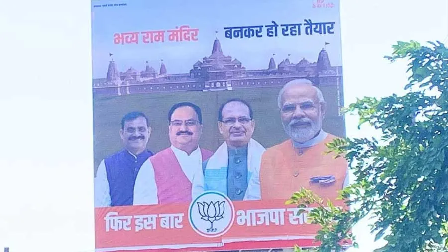મધ્યપ્રદેશમાં વિધાનસભા ચૂંટણી માટે 17મી નવેમ્બરે મતદાન થશે. ચૂંટણી પહેલા BJPએ પ્રચાર માટે ભોપાલ અને ઈન્દોરમાં અયોધ્યામાં રામ મંદિર નિર્માણના હોર્ડિંગ્સ લગાવ્યા છે. હોર્ડિંગ્સ પર લખેલું છે, 'ભવ્ય રામ મંદિર તૈયાર થઈ રહ્યું છે, આ વખતે ફરી BJP સરકાર.' કોંગ્રેસે આ હોર્ડિંગ્સ સામે વાંધો ઉઠાવ્યો છે અને BJP વિરુદ્ધ ચૂંટણી પંચમાં ફરિયાદ કરી છે. જ્યારે, BJPનું કહેવું છે કે, હોર્ડિંગ્સ હટાવવામાં આવશે નહીં, પરંતુ કોંગ્રેસે જણાવવું જોઈએ કે, રામ મંદિર પર તેનું શું વલણ છે.