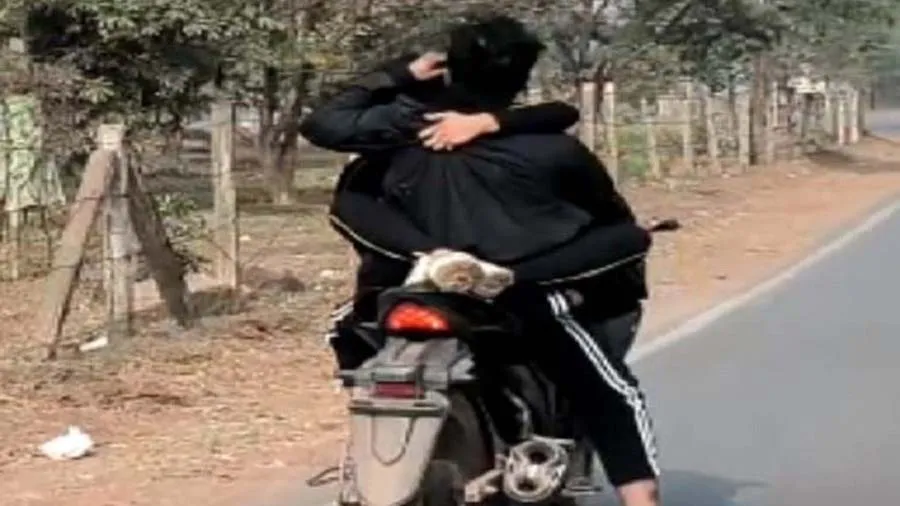 ચાલુ બાઇક પર રોમાન્સ કરવો કપલને પડ્યો મોંઘો, પોલીસે કરી કાર્યવાહી