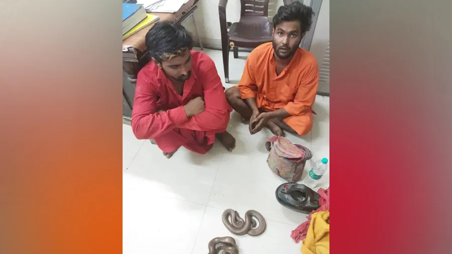 હરિયાણાના ગુરુગ્રામમાં સાધુનો વેશ બનાવીને લોકોને સાંપોથી ડરાવીને લૂંટવાના આરોપમાં 2 લૂંટારાઓની ધરપકડ કરવામાં આવી છે. પોલીસે સોમવારે આ જાણકારી આપી છે. પોલીસે જણાવ્યું કે, બંને વ્યક્તિઓ ટ્રાફિક સિગ્નલ પર કાર કે ઓટો રિક્ષામાં સવાર ઘણા લોકો પર સાંપ છોડીને તેમને લૂંટ્યા છે. પોલીસે તેમના કબ્જામાંથી બે સાંપ જપ્ત કરીને વન્ય જીવ વિભાગને સોંપી દીધા છે. પોલીસે જણાવ્યું કે, 22 વર્ષીય રોહિત નાથ અને 26 વર્ષીય શાકિબ નાથને શનિવારે શહેરની એક કોર્ટમાં રજૂ કરવામાં આવ્યા હતા. જેણે તેમને ન્યાયિક કસ્ટડીમાં મોકલી દીધા છે.