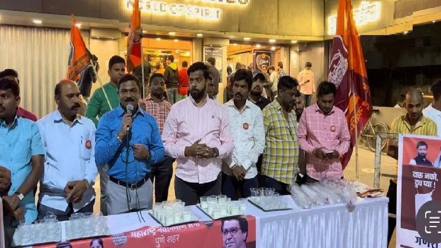 MNS પુણે શહેર પ્રમુખ સાંઈ નાથ બાબરે દારૂની દુકાનની સામે દૂધનો સ્ટોલ લગાવ્યો. સાથે જ એક બેનર પણ લગાવ્યું. તેના પર લખ્યું કે, "દારૂ નહી, દૂધ પીવો". દારૂની દુકાનની સામે દૂધના સ્ટોલને જોઈ લોકો આશ્ચર્યચકિત થઈ ગયા છે. અહીં બાબર લોકોને મફતમાં દૂધ પીવડાવી રહ્યો છે.
