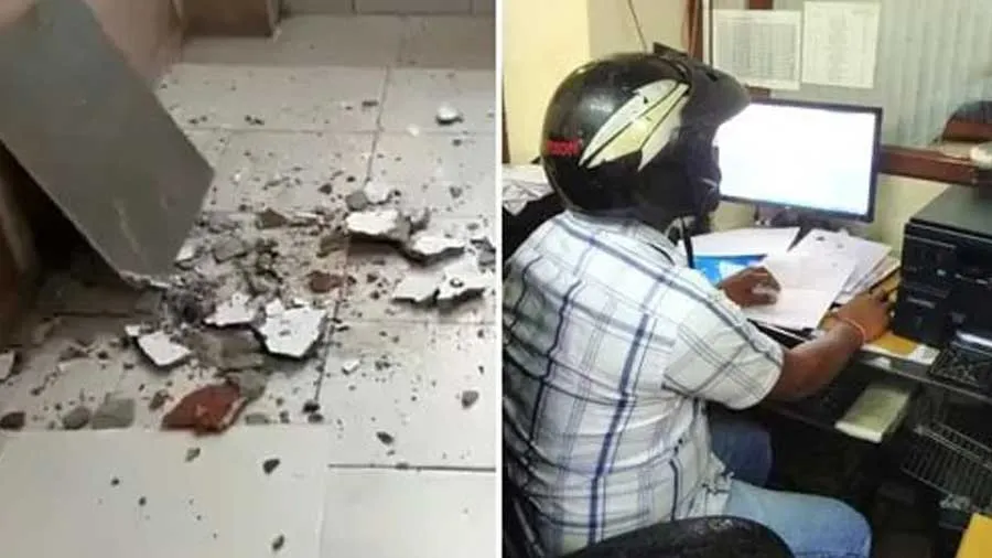 સરકારી કર્મચારીઓ હેલમેટ પહેરીને કેમ ઓફિસમાં કામ કરી રહ્યા છે?