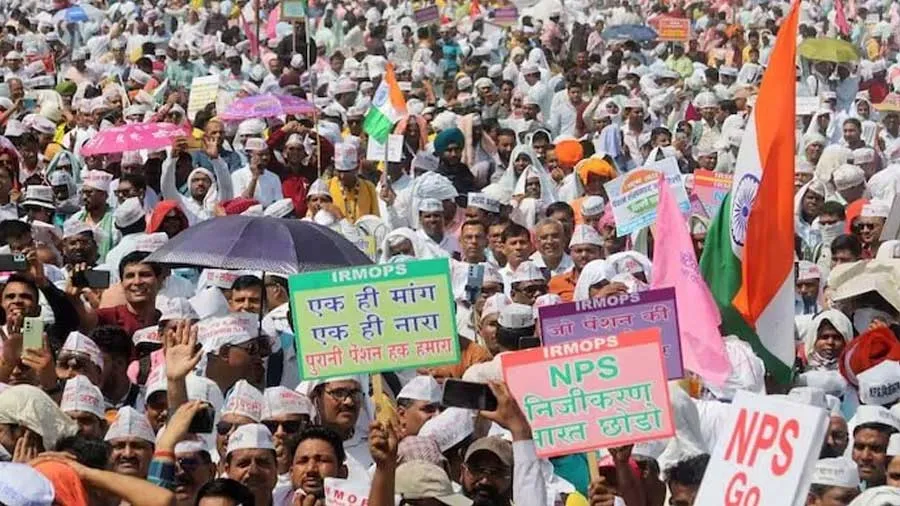 જૂની પેન્શન યોજના (OPS) લાગૂ કરવાની માંગને લઈને દેશભરથી હજારો સરકારી કર્મચારી રવિવારે રાષ્ટ્રીય રાજધાનીના રામલીલા મેદાનમાં ભેગા થયા. નેશનલ મૂવમેન્ટ ફોર ઓલ્ડ પેંશ સ્કીમ (NMOPS)ના તત્વાધાનમાં કર્મચારીઓએ કેન્દ્ર સમક્ષ પોતાની માગ ઉઠાવવા માટે એક રેલીનું આયોજન કર્યું. પેન્શન શંખનાદ મહારેલીનું આયોજન હાલની રાષ્ટ્રીય પેન્શન યોજના (NPS)ની જગ્યાએ જૂની પેન્શન યોજના લાગૂ કરવા માટે કેન્દ્ર પર દબાવ બનાવવાના ઉદ્દેશ્યથી કરવામાં આવ્યું છે.