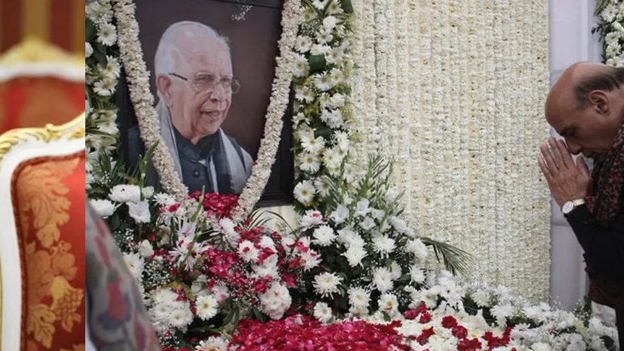રાજનાથ સિંહ શુક્રવારે પૂર્વ રાજ્યપાલ કેશરીનાથના બેસણામાં ભાગ લેવા માટે પ્રયાગરાજ પહોંચ્યા હતા. રાજનાથ સિંહ લગભગ એક કલાક સુધી લોહિયા માર્ગ સ્થિતિ પૂર્વ રાજ્યપાલના આવાસ પર રહ્યા હતા. તેમણે કેશરીનાથન ફોટો પર પુષ્પ અર્પિત કર્યા બાદ તેમના પુત્ર નીરજ ત્રિપાઠી, પુત્ર વધુ કવિતા યાદવ ત્રિપાઠીને મળીને તેમનું મનોબળ વધાર્યું. રાજનાથ સિંહે કેશરીનાથ ત્રિપાઠી સાથે વિતાવેલી પોતાની પળોને યાદ કરી. સેનાના વિમાનથી પ્રયાગરાજ પહોંચ્યા હતા.