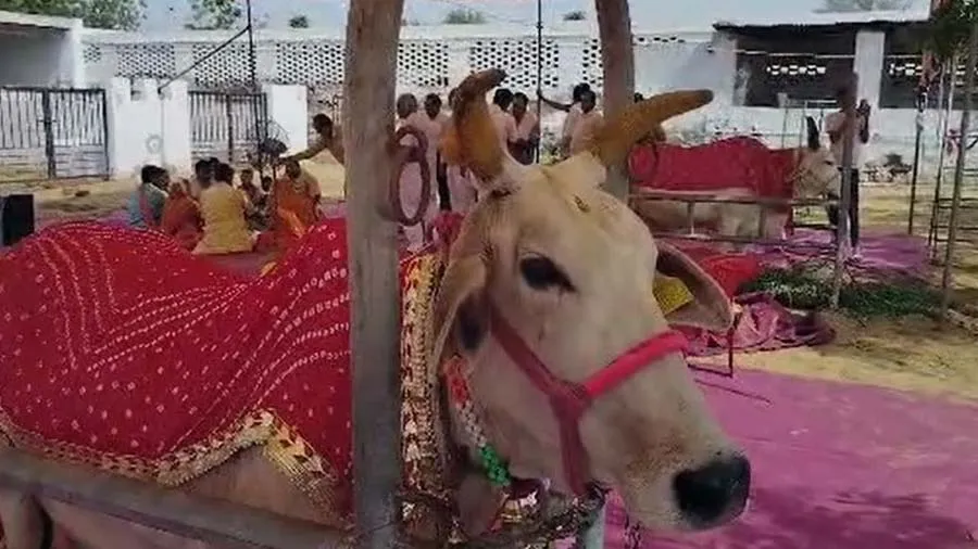 રાજસ્થાનના શાહી મહેલોમાં ફિલ્મી સ્ટાર્સના લગ્ન વિશે તો તમે અવારનવાર સાંભળતા જ હશો. જોકે, રાજસ્થાનમાં એક એવા અનોખા લગ્ન થયા છે, જેના વિશે તમે ક્યારેય સાંભળ્યુ નહીં હશે અને જોયુ પણ નહીં હશે. અહીં એક બળદ અને એક ગાયને લગ્નના બંધનમાં બાંધી દેવામાં આવ્યા. આ અજીબ ઘટના સીકર જિલ્લાના ફતેહપુર શેખાવાટીમાં સામે આવી છે. ગાય અને બળદના લગ્ન ધૂમધામથી કરવામાં આવ્યા, જેમા જાન પણ આવી, મંત્રોચ્ચાર પણ થયા અને પાંચ પંડિતોના સાનિધ્યમાં બંનેના સાત ફેરા પણ કરાવવામાં આવ્યા.
