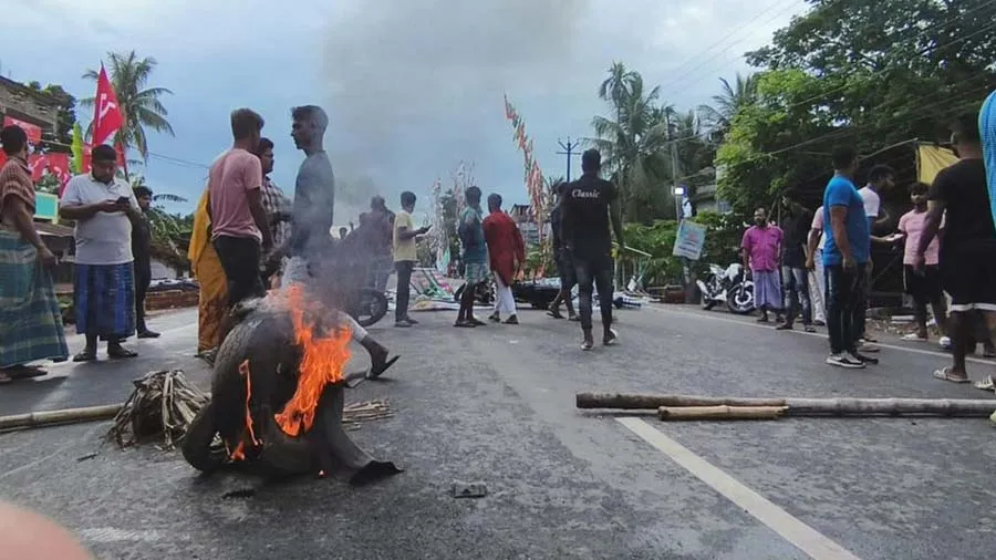#WATCH | West Bengal panchayat election | Ballot box at a polling booth in Baranachina of Dinhata in Cooch Behar district was set on fire allegedly by voters who were angry with bogus voting that was reportedly going on here. pic.twitter.com/6C5aC00uac
