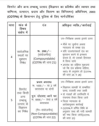 COTPA એક્ટમાં જ તમાકુ ઉત્પાદનો પર ચિત્રાત્મક આરોગ્ય ચેતવણીઓ ફરજિયાત બનાવવામાં આવી હતી. ઉત્પાદકો દ્વારા તેના ઉલ્લંઘન માટે દંડ અને કેદની જોગવાઈ પણ કરવામાં આવી છે.