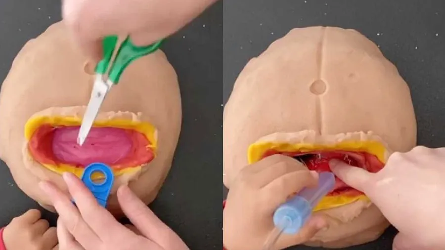 જે બાળકોને સર્જરીમાં રૂચી છે તેમને આ મહિલા ડૉક્ટર તાલીમ આપે છે. આ વીડિયો ઈન્સ્ટાગ્રામ યૂઝર @thebreakfasteurનો છે. જેના 2 લાખથી વધારે ફોલોઅર્સ છે. જે પોતાને ડૉક્ટર મોમ તરીકે ઓળખાવે છે. જે તેના સર્જરી લવર બાળક નાની ઉંમરમાં સર્જરી શીખવાડવા માટે ક્લેના બોડી પાર્ટ્સ બનાવે છે અને તેના પર બાળકને સર્જરી કરવાની તાલીમ આપે છે.