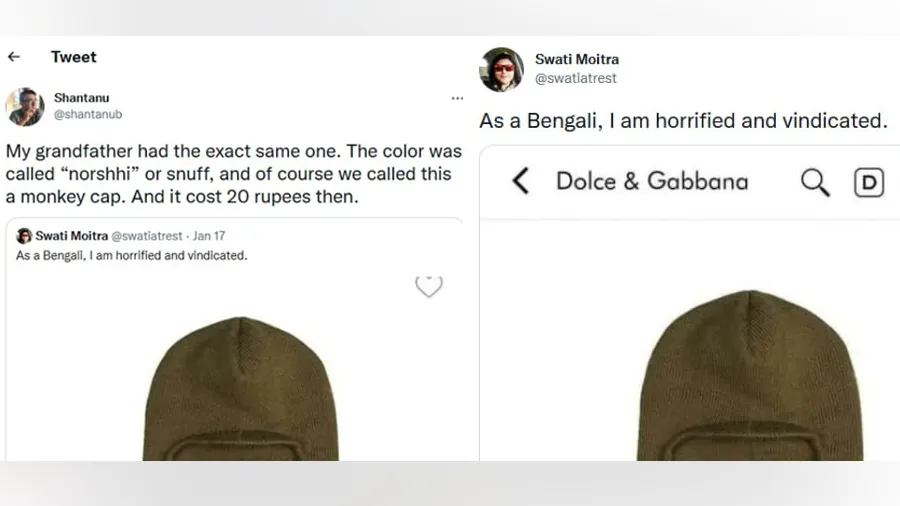 અહીં તમને જણાવી દઈએ કે, 'મંકી કેપ' પર ચર્ચાની શરૂઆત થઈ સ્વાતિ નામની યુઝરના ટ્વીટથી. સ્વાતિએ ટ્વિટર પર એક પોસ્ટ કરી અને તેમાં Dolce & Gabbana (D&G) કંપનીની 'મંકી કેપ'નો ફોટો શેર કર્યો. ફોટામાં 'મંકી કેપ'ની કિંમત 31,990 રૂપિયા લખવામાં આવી છે. D&G એક ઇટાલિયન લક્ઝરી ફેશન બ્રાન્ડ છે.