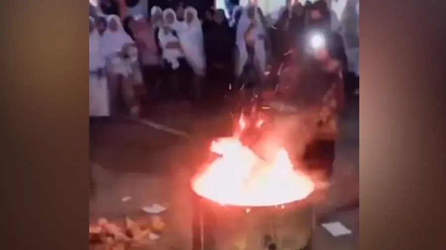 સોશિયલ મીડિયામાં રોજ કંઈક ને કંઈક વાયરલ થતું રહેતું હોય છે. આજે ઇન્ટરનેટના જમાનામાં ક્યારે શું વાયરલ થઈ જાય તેની કોઈને ખબર હોતી નથી. હાલમાં જ સોશિયલ મીડિયા પર એક શાળાનો વીડિયો વાયરલ થઈ રહ્યો છે જેને જોયા બાદ યુઝર્સ હેરાન છે. વાયરલ વીડિયોમાં મહિલા શિક્ષિકા આગમાં મોબાઈલ ફેકતી નજરે પડી રહી છે. દાવો કરવામાં આવી રહ્યો છે કે આ મોબાઈલ ફોન વિદ્યાર્થીઓના છે. કેટલાક મીડિયા રિપોર્ટમાં કહેવામાં આવ્યું છે કે આ વીડિયો મલેશિયા કે ઇન્ડોનેશિયાનો હોય શકે છે. જોકે તેની પુષ્ટિ થઈ નથી.