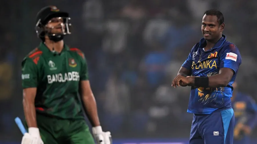 બાંગ્લાદેશ અને શ્રીલંકા સામેની મેચમાં એમ્પાયર્સનું કહેવું હતું કે, મેચ દરમિયાન એન્જેલો મેદાન પર મોડેથી આવ્યો હતો. માટે તેને ટાઇમ આઉટ આપવામાં આવ્યો. જો શાકિબ નોટ આઉટની અપીલ કરી દેતે તો એન્જેલો આઉટ ગણાતે નહીં. ICC નિયમ અનુસાર વિકેટ પડ્યા કે બેટ્સમેનના રિટાયર થયા પછી આવનારા બેટ્સમેને 3 મિનિટની અંદર સ્ટ્રાઈક લેવાની રહે છે. પણ ICC વર્લ્ડ કપ 2023માં બેટ્સમેન માટે સમય સીમા ઘટાડીને 3 મિનિટના સ્થાને 2 મિનિટ કરી દેવામાં આવી છે.