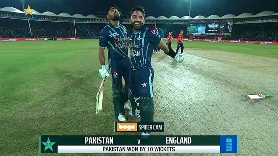 ઈંગ્લેન્ડ સામેની બીજી T20માં, પાકિસ્તાન (PAK vs ENG)એ અદભૂત પ્રદર્શન કર્યું અને 10 વિકેટથી અદભૂત વિજય નોંધાવ્યો. પાકિસ્તાન તરફથી કેપ્ટન બાબર આઝમ અને મોહમ્મદ રિઝવાને જોરદાર બેટિંગ કરી અને ટીમને 10 વિકેટે જીત અપાવી. પ્રથમ બેટિંગ કરતા ઈંગ્લેન્ડે 20 ઓવરમાં 5 વિકેટે 199 રન બનાવ્યા હતા, ત્યારબાદ બાબર અને રિઝવાને મળીને ઈતિહાસ રચ્યો હતો અને 19.3 ઓવરમાં 203 રન બનાવીને ટીમને 10 વિકેટે જીત અપાવી હતી.