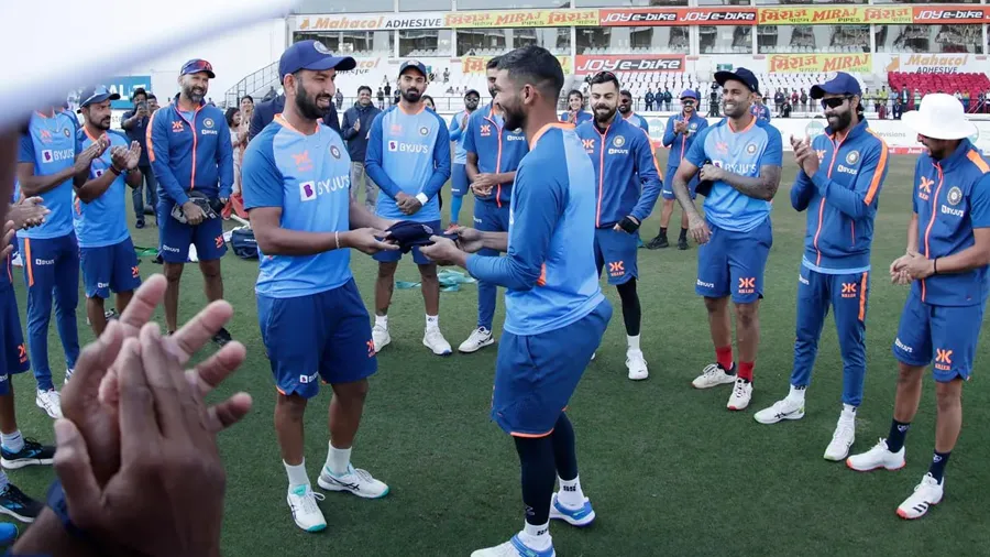 A special moment for him as he receives his Test cap from @cheteshwar1 ? ?#TeamIndia | #INDvAUS | @mastercardindia pic.twitter.com/dRxQy8IRvZ