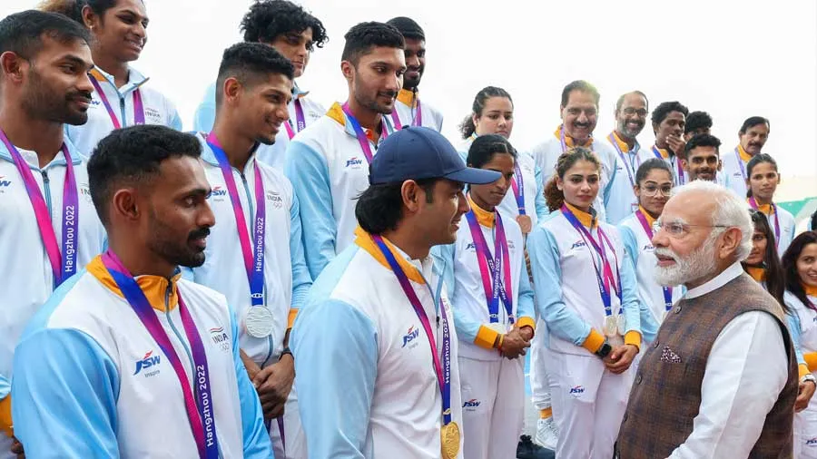 PM કેનવાસના વિસ્તરણની નોંધ લીધી કારણ કે ભારતે લગભગ તમામ રમતોમાં મેડલ જીત્યા જેમાં તેણે ભાગ લીધો હતો. ઓછામાં ઓછી 20 ઇવેન્ટ એવી હતી કે જ્યાં ભારતે ક્યારેય પોડિયમ ફિનિશ કર્યું ન હતું. તમે માત્ર ખાતું જ ખોલ્યું નથી પરંતુ યુવા પેઢીને પ્રેરિત કરશે એવો માર્ગ પ્રજ્વલિત કર્યો છે. તે એશિયન ગેમ્સથી આગળ વધશે અને ઓલિમ્પિક તરફની અમારી કૂચમાં નવો આત્મવિશ્વાસ આપશે., તેમણે ઉમેર્યુ.