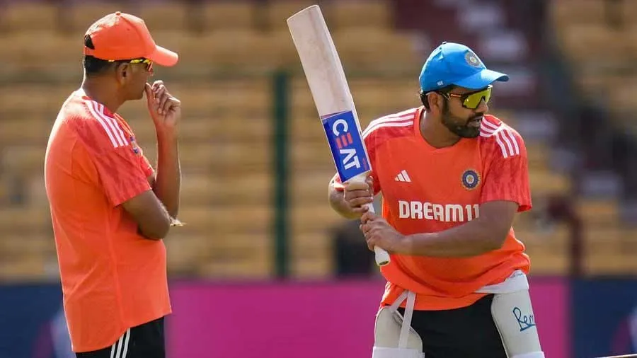 ભારતીય ટીમના કોચ રાહુલ દ્રવિડનો એક વીડિયો સામે આવ્યો છે, જેમાં તેઓ રોહિત શર્માના ભરપેટ વખાણ કરતા નજરે પડી રહ્યા છે. રવિવારે થનારી મેચ અગાઉ શનિવારની સાંજે થયેલી પ્રેસ કોન્ફરન્સમાં પૂર્વ ક્રિકેટર અને ટીમના હેડ કોચ રાહુલ દ્રવિડને ટૂર્નામેન્ટમાં રોહિત શર્માના યોગદાનને લઈને સવાલ પૂછવામાં આવ્યો. તેના જવાબમાં દ્રવિડે કહ્યું કે, એક લીડર તરીકે મેદાનની અંદર અને બહાર તેમણે બાકી ખેલાડીઓ માટે એક ઉદાહરણ રજૂ કર્યું છે.