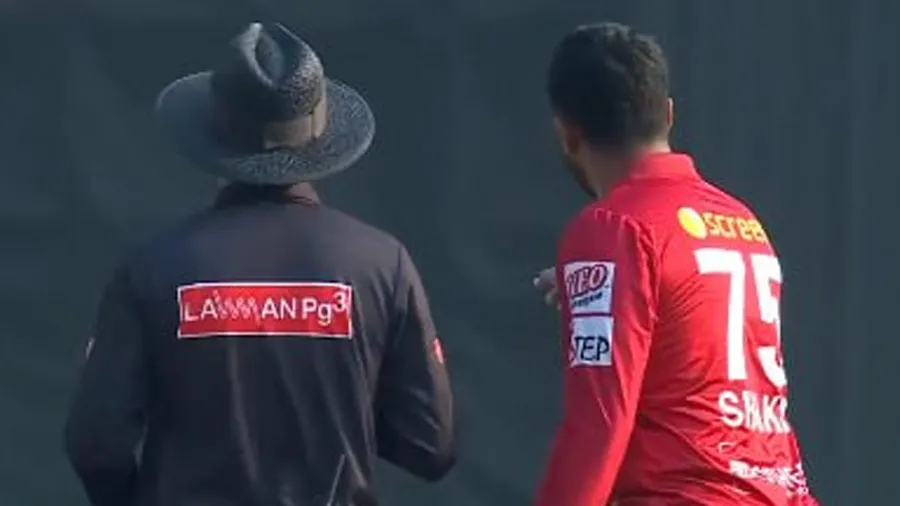આ કારણે શાકિબ અલ હસન ખૂબ ગુસ્સામાં હતો અને આ જ કારણે તે ચર્ચામાં પણ આવ્યો હતો. 16મી ઓવરના ચોથા બૉલ પર એક બાઉન્સર નાખવામાં આવ્યો, જે ખૂબ ઉપર હતો, પરંતુ અમ્પાયરે તેને વાઇડ ન આપ્યો. ત્યારબાદ શાકિબ અલ હસન ગુસ્સે ભરાઇ ગયો અને તે ખૂબ જ આક્રમક મૂડ સાથે લેગ અમ્પાયર તરફ જવા લાગ્યો અને તેમને વાઇડ ન આપવાનું કારણ પૂછવા લાગ્યો.