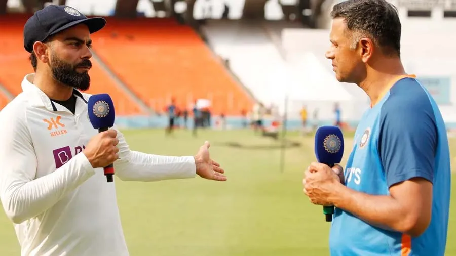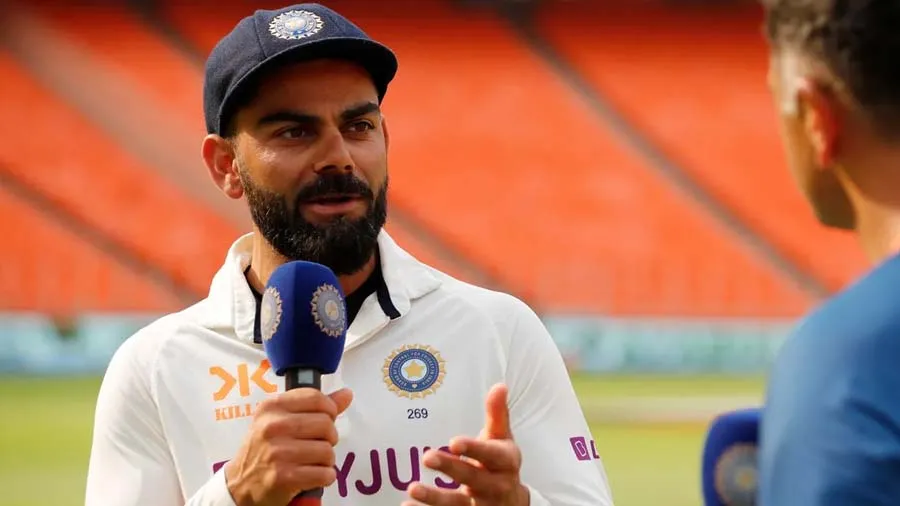ભારત અને ઓસ્ટ્રેલિયા વચ્ચે 4 મેચોની ટેસ્ટ સીરિઝની પૂર્ણાહુતિ થઈ ગઈ છે. અમદાવાદમાં રમાયેલી છેલ્લી ટેસ્ટ મેચ ડ્રો થતા ભારતીય ટીમે બોર્ડર ગાવસ્કર ટ્રોફી 2-1થી જીતી લીધી છે. આ મેચમાં વિરાટ કોહલીએ શાનદાર પ્રદર્શન કર્યું. તેણે આ મેચમાં 186 રનની ઇનિંગ રમી અને 3 વર્ષના સદીઓનું સૂકું સમાપ્ત કર્યું. વિરાટ કોહલીને તેના માટે ‘મેન ઓફ ધ મેચ’નો એવોર્ડ આપવામાં આવ્યો હતો. તો મેચ બાદ રાહુલ દ્રવિડે તેનું ઇન્ટરવ્યૂ લીધું હતું, જેમાં વિરાટ કોહલીએ શાનદાર જવાબ આપ્યા.