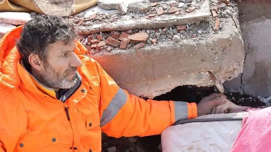 તુર્કીમાં 15 વર્ષની વ્હાલસોયી દીકરી અને પિતા ઘરમાં સુતા હતા ત્યારે ભૂંકપના એક આંચકાએ પિતા- દીકરીને અલગ કરી દીધા. કાટમાળ નીચે દબાઇ જતા દીકરીનું મોત થયું અને પિતા તેનો હાથ પકડીને બેસી રહ્યા છે.
