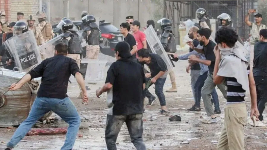 સોશિયલ મીડિયા પર વાયરલ થયેલા વીડિયોમાં પ્રદર્શનકારીઓ પ્રભાવશાળી ઈરાકી શિયા મૌલવી અને રાજકીય નેતા મુકતદા અલ-સદ્ર સાથે જોડાયેલા ધ્વજ લહેરાતા અને નારા લગાવતા  જોવા મળે છે.